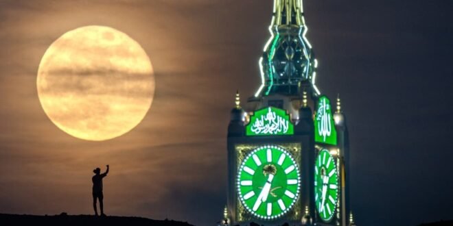 اختلطت معاني الجمال وقدسية المكان، لحظة تجلي اكتمال البدر في سماء مكة المكرمة، لتتحول إلى لوحة فنية بديعة استطاع المصور الضوئي يوسف بجاش أن يوثقها بكل احترافية مذهلة، وذلك وقت ظهور القمر بعد الخسوف من بين الغيوم الآتية من الشرق.